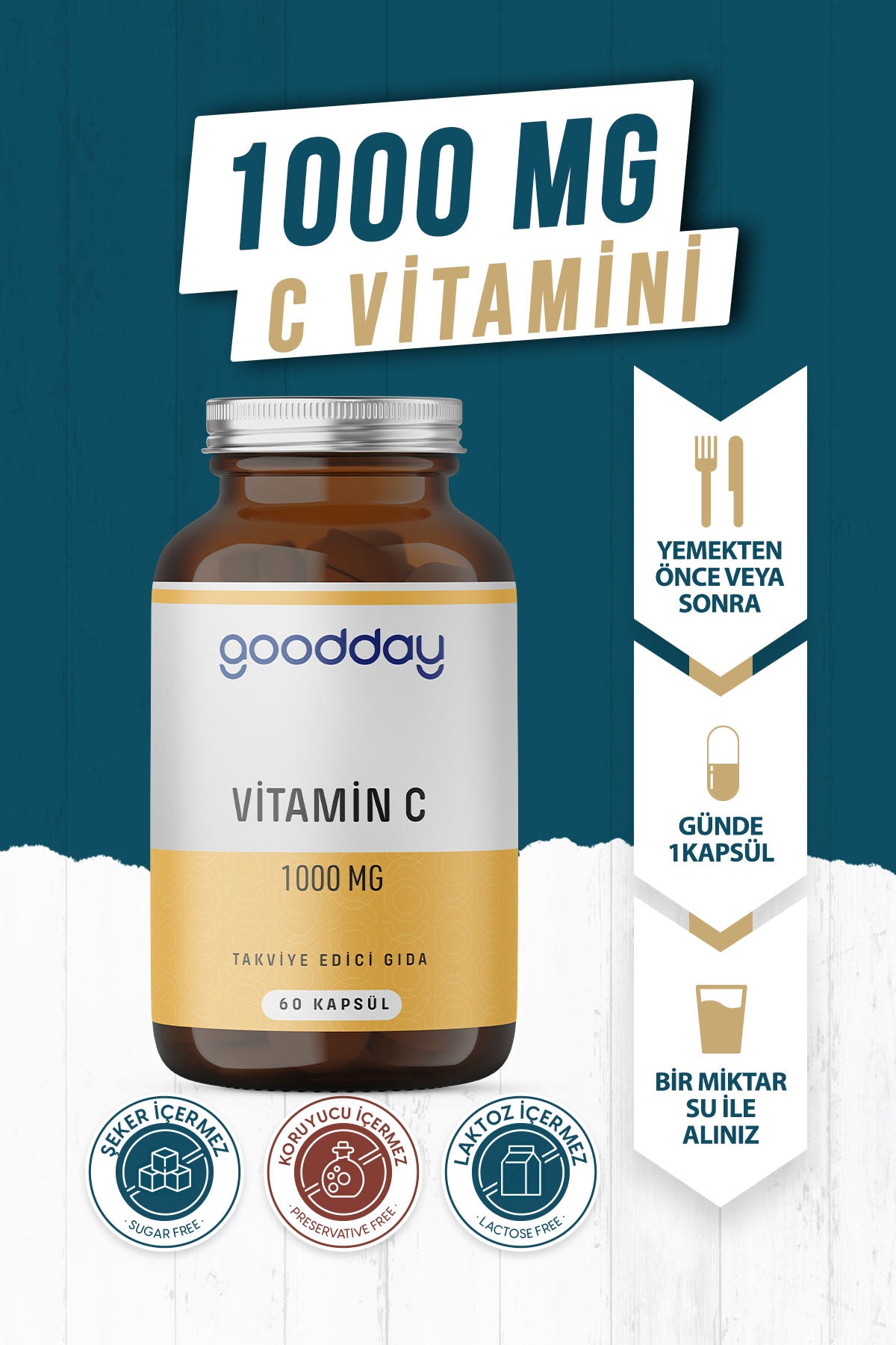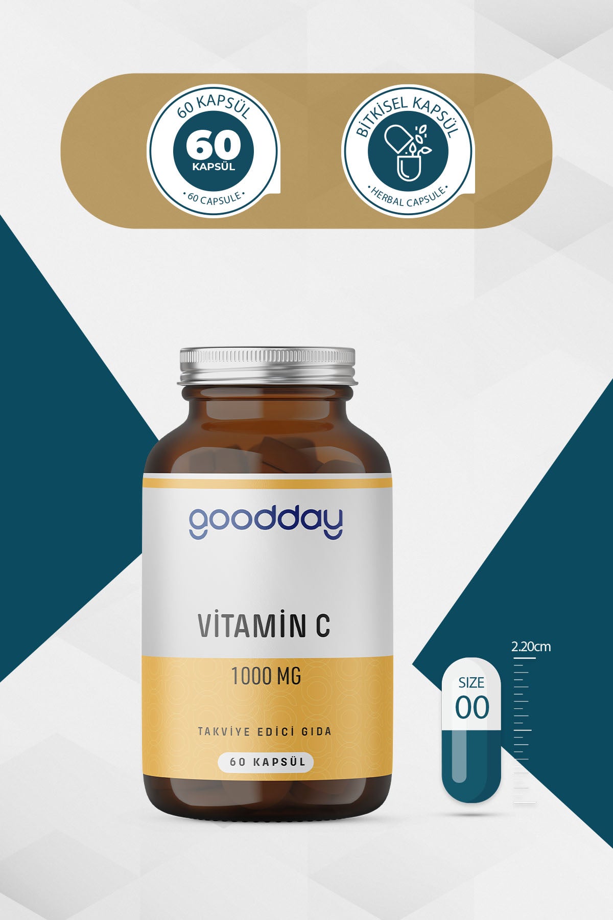 İçindekiler: L-Askorbik asit, Bitkisel Kapsül (Hidroksipropil metil selüloz)